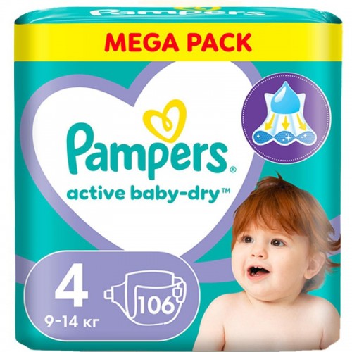 • Подгузники Pampers Active Baby-Dry 4 Maxi (9-14 кг) 106шт.